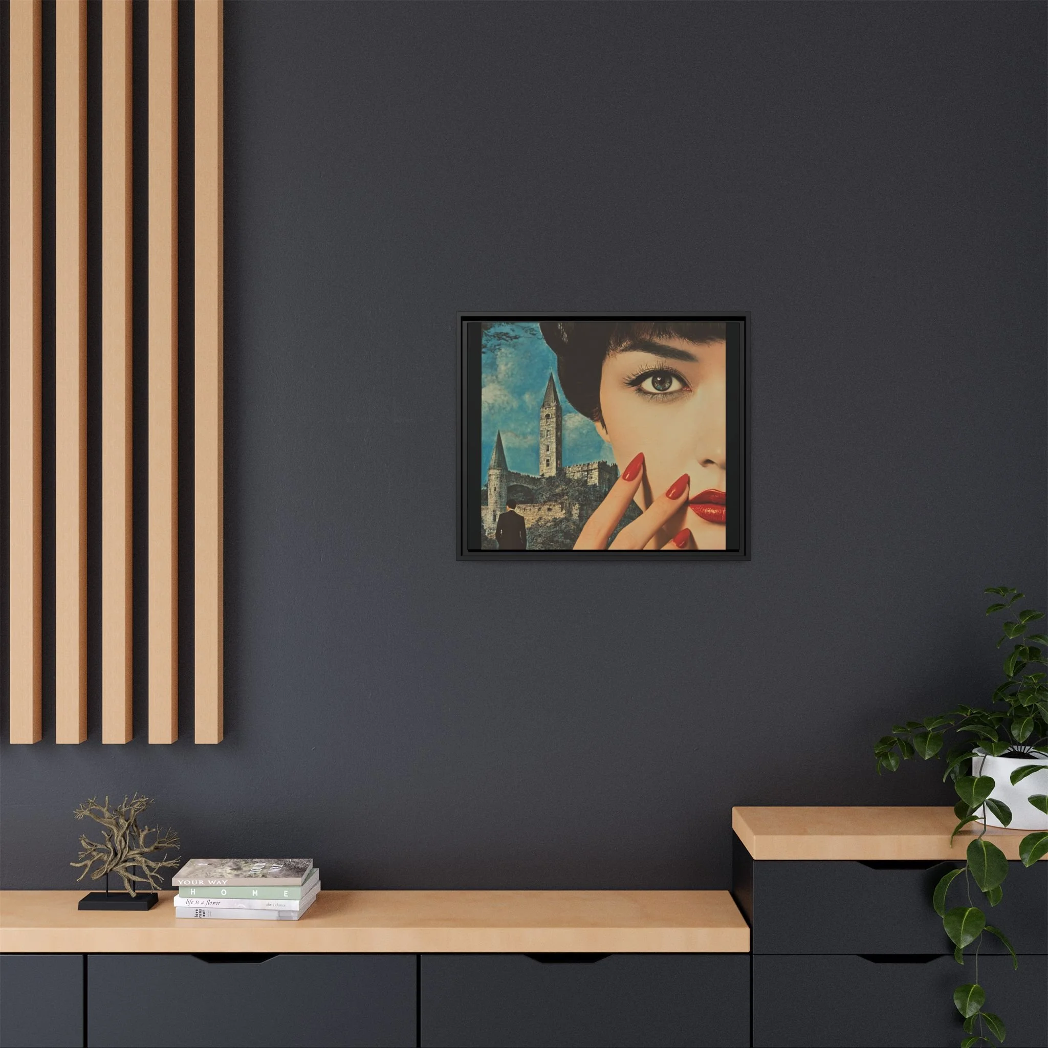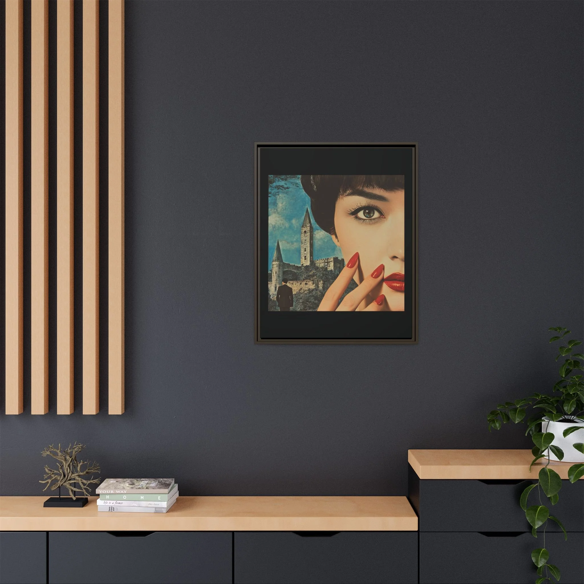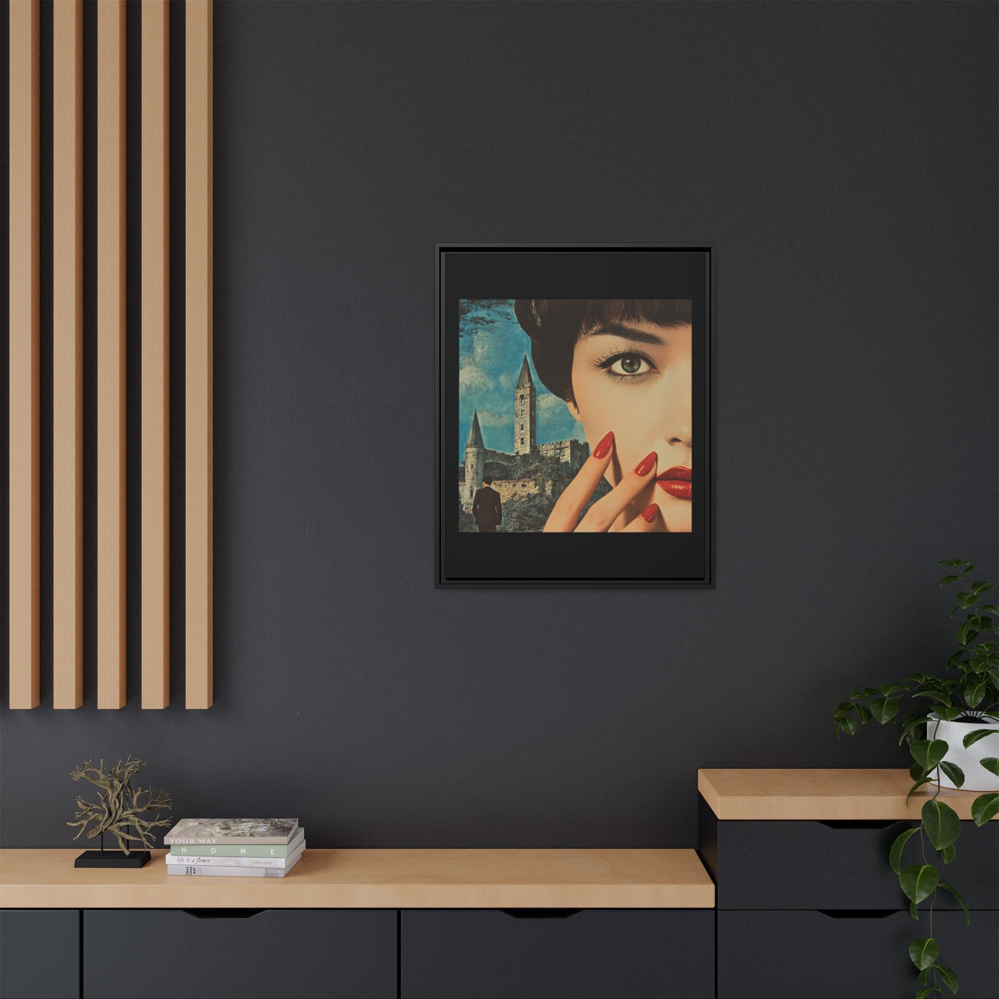 Elevate your space with READ, a striking portrayal of unspoken power, allure, and the undeniable presence of a story waiting to unfold. This Matte Canvas, Framed artwork captures the essence of silent command—where crimson spills like poetry and lacquered nails flash like embers, a language understood without a single word.