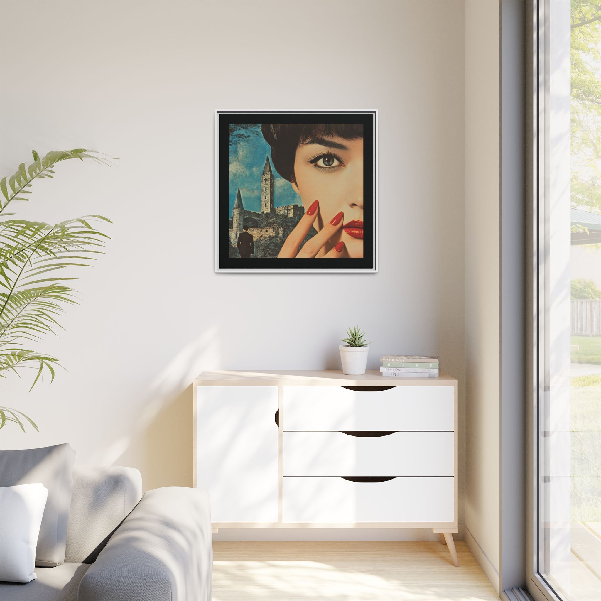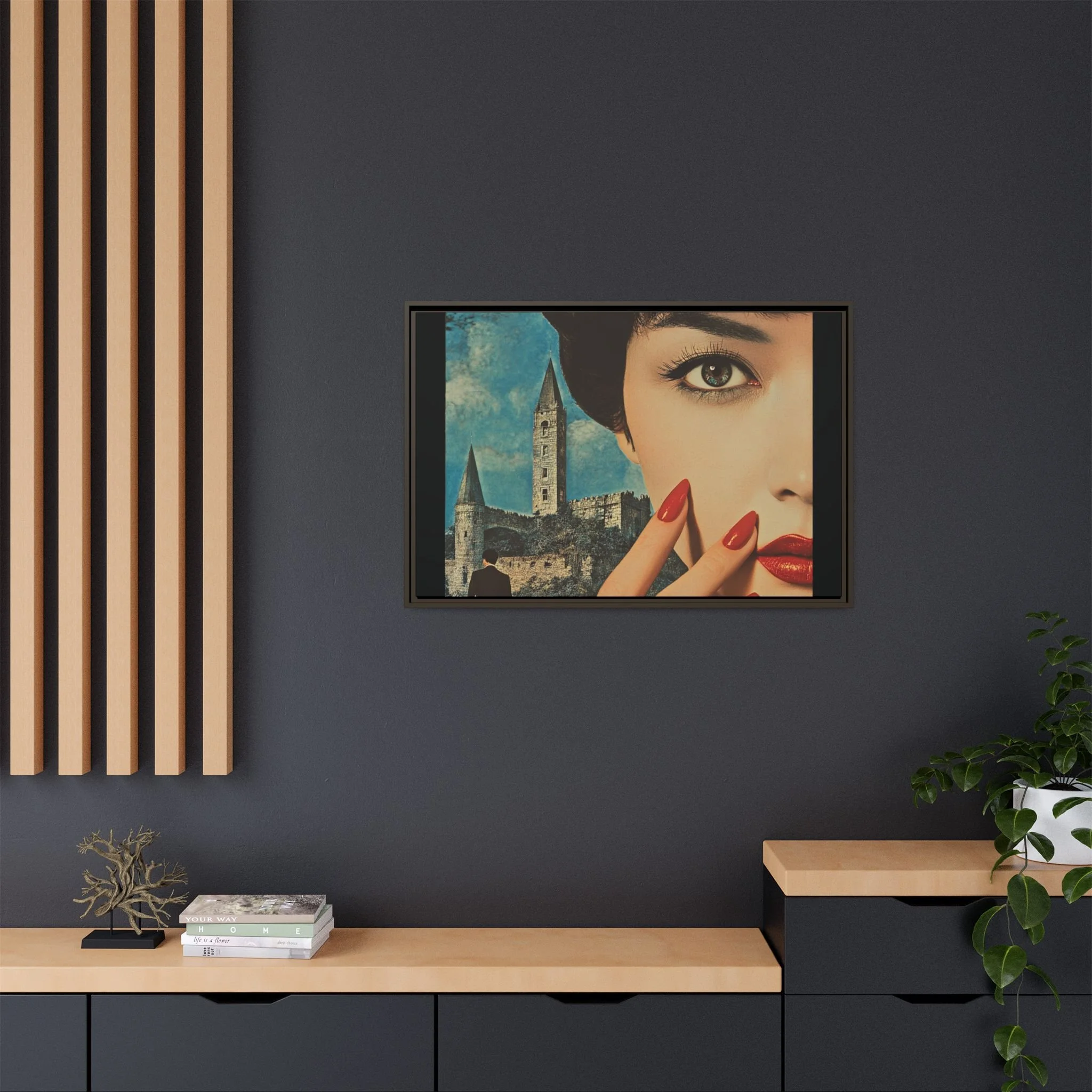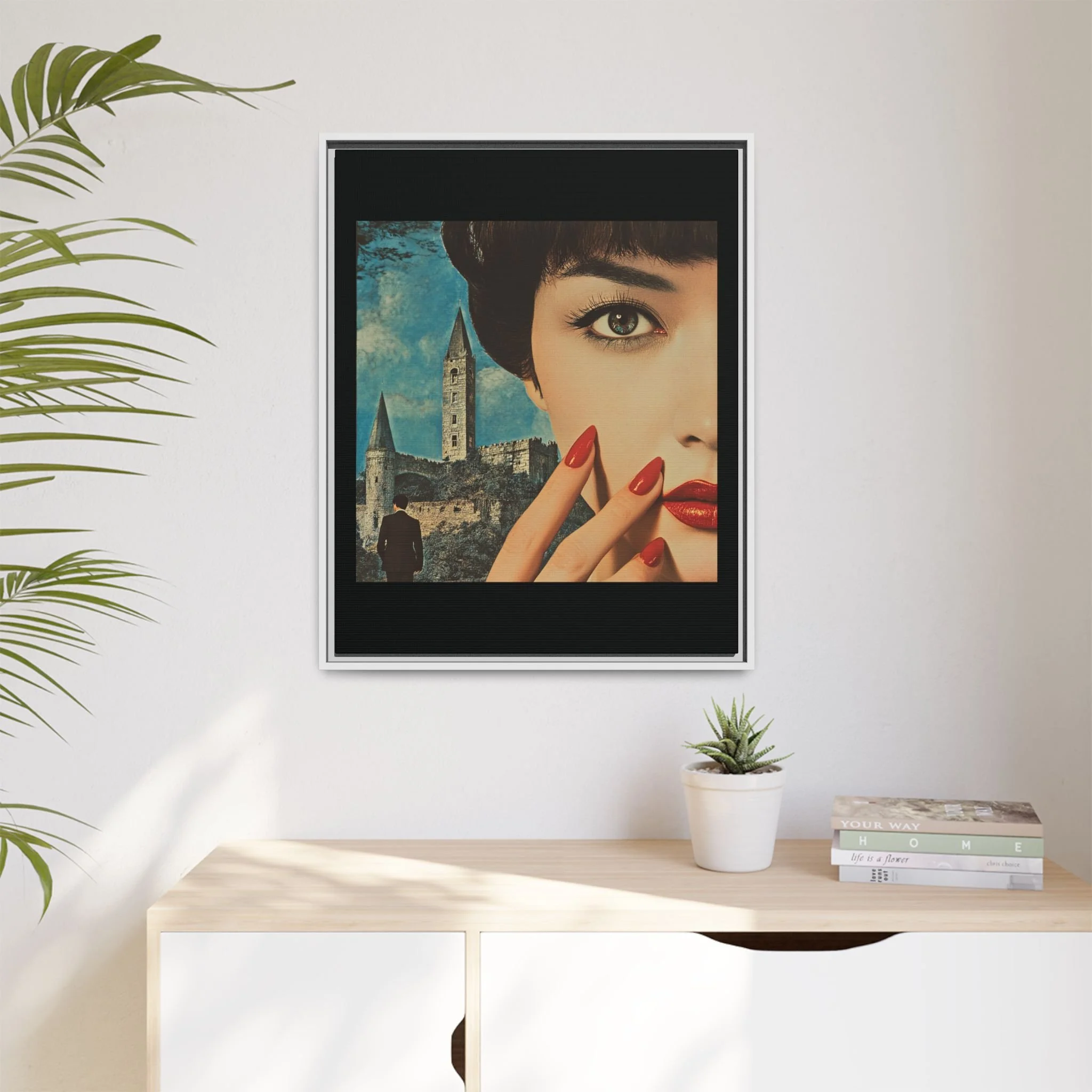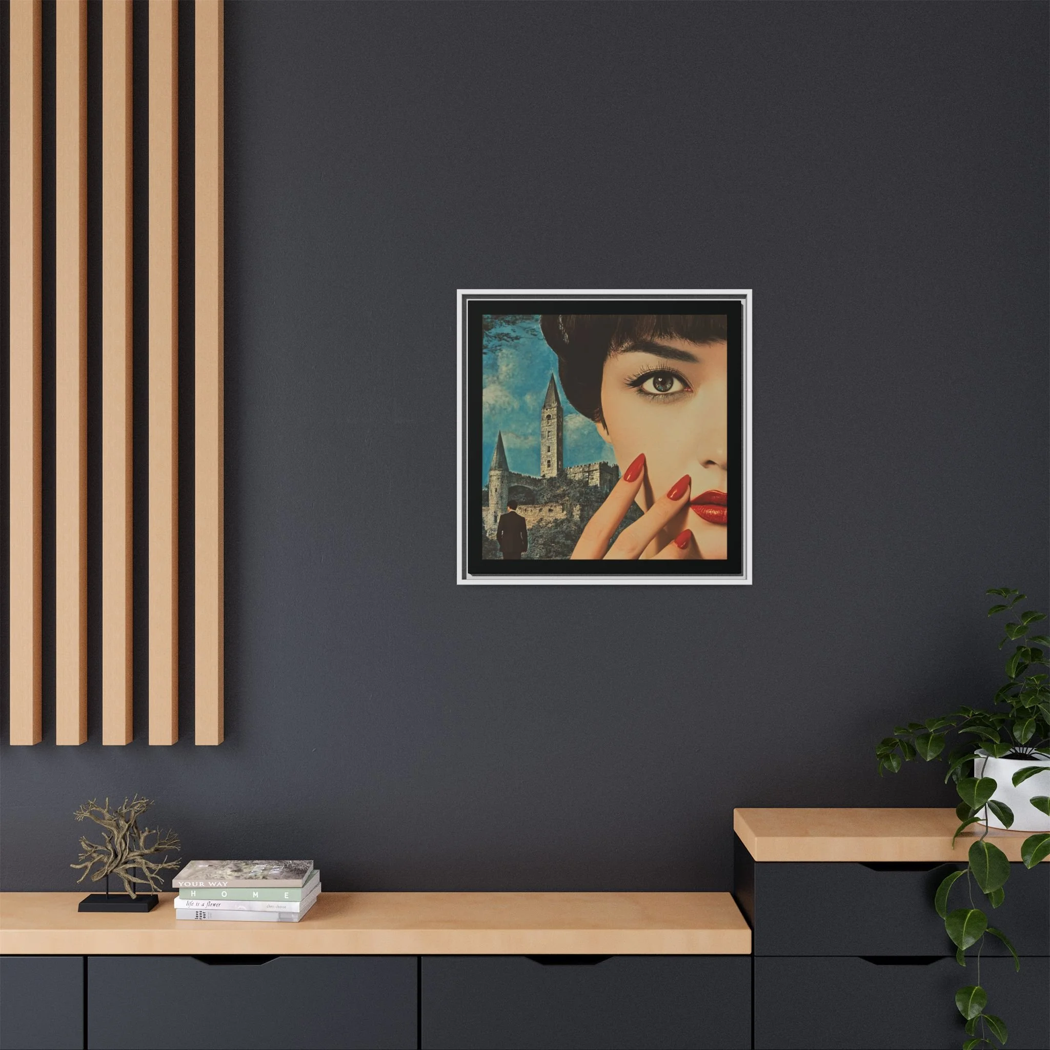 Elevate your space with READ, a striking portrayal of unspoken power, allure, and the undeniable presence of a story waiting to unfold. This Matte Canvas, Framed artwork captures the essence of silent command—where crimson spills like poetry and lacquered nails flash like embers, a language understood without a single word.