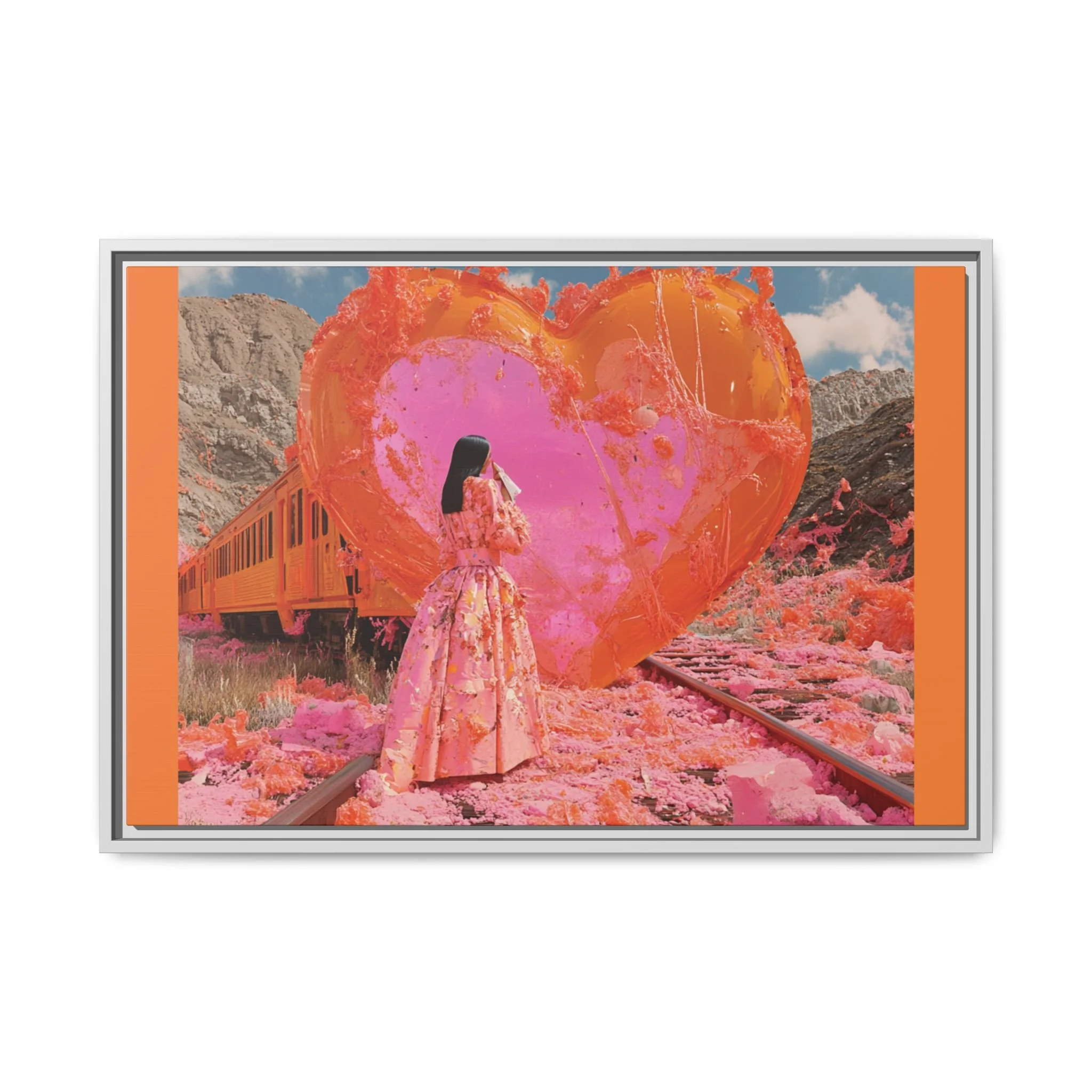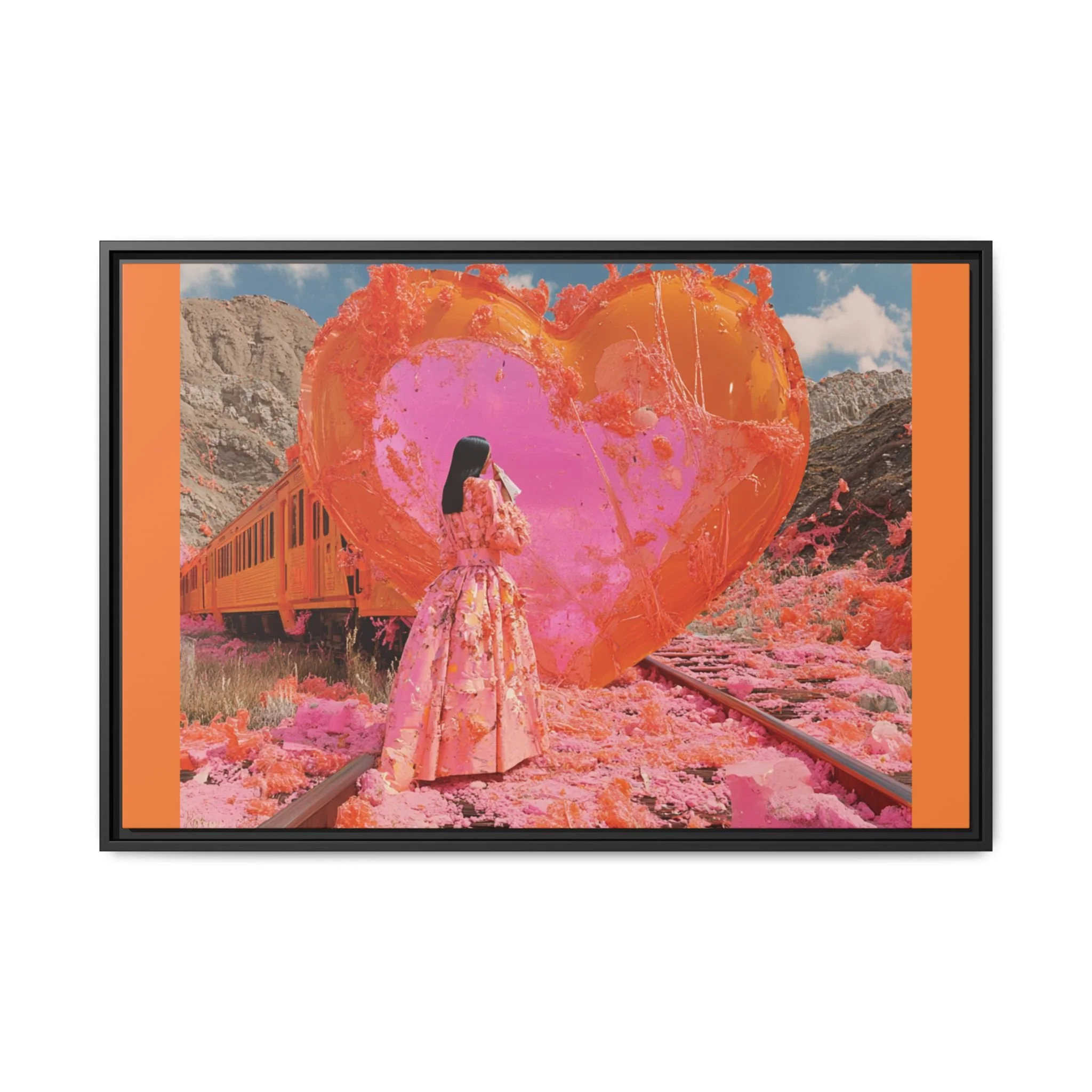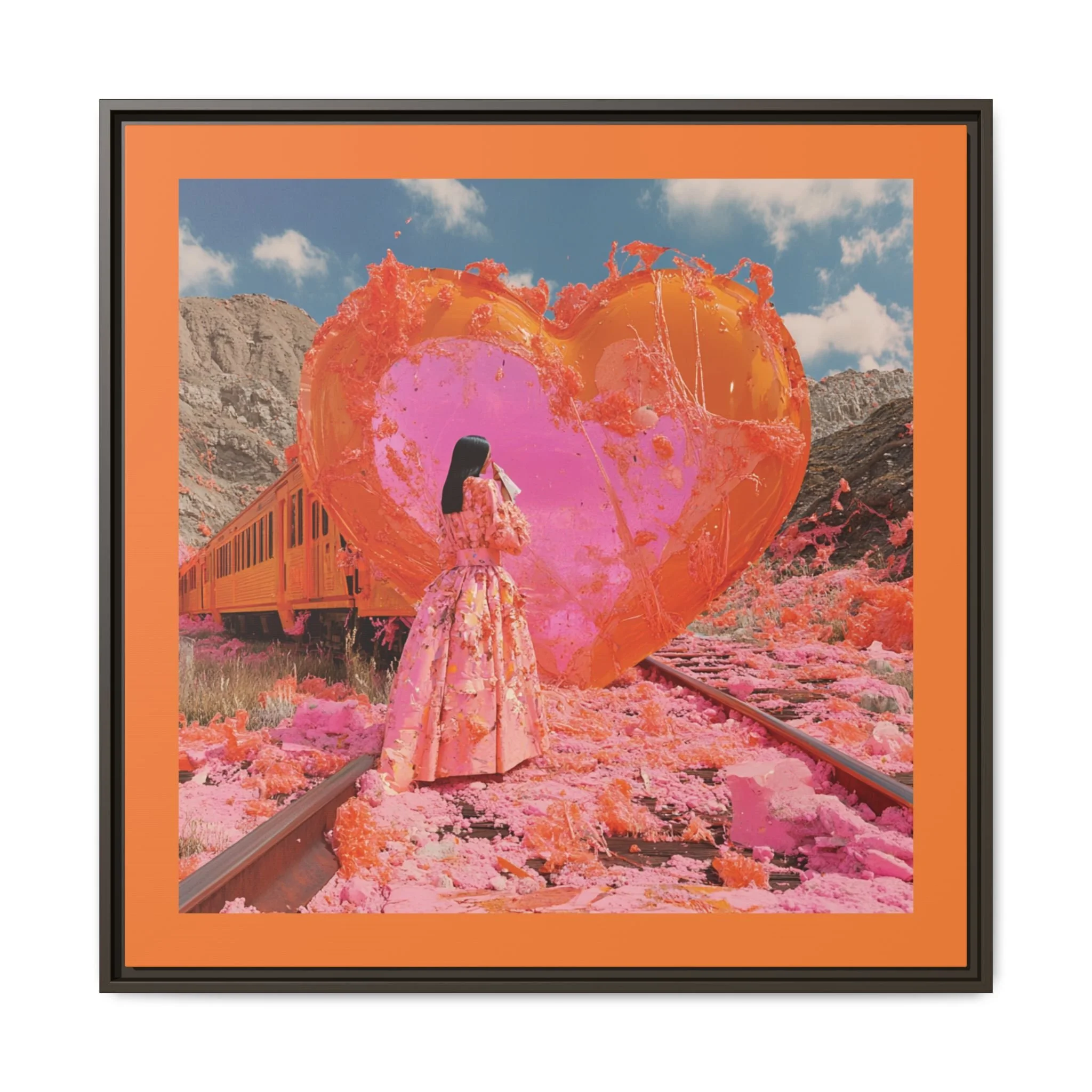 Ignite your space with the raw intensity of Train Wreck of Love, a breathtaking portrayal of love’s resilience amidst chaos. This Matte Canvas, Framed masterpiece captures the beauty of destruction and rebirth—where passion rises from the embers, and color spills from the fractures, weaving a story of transformation.