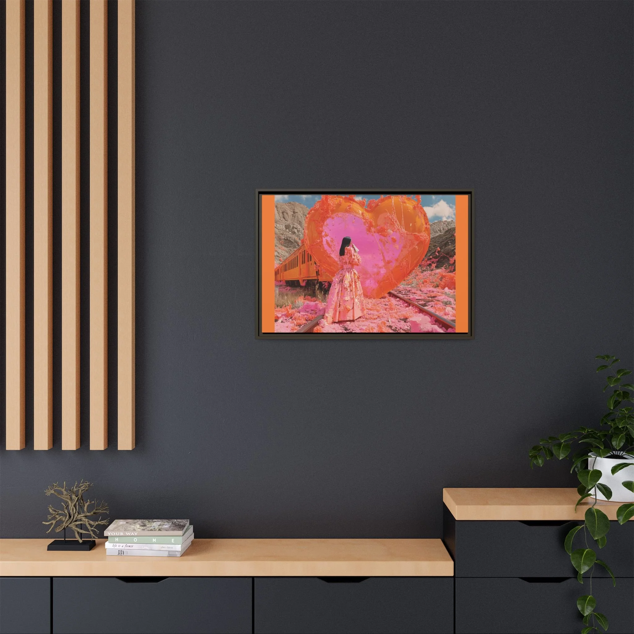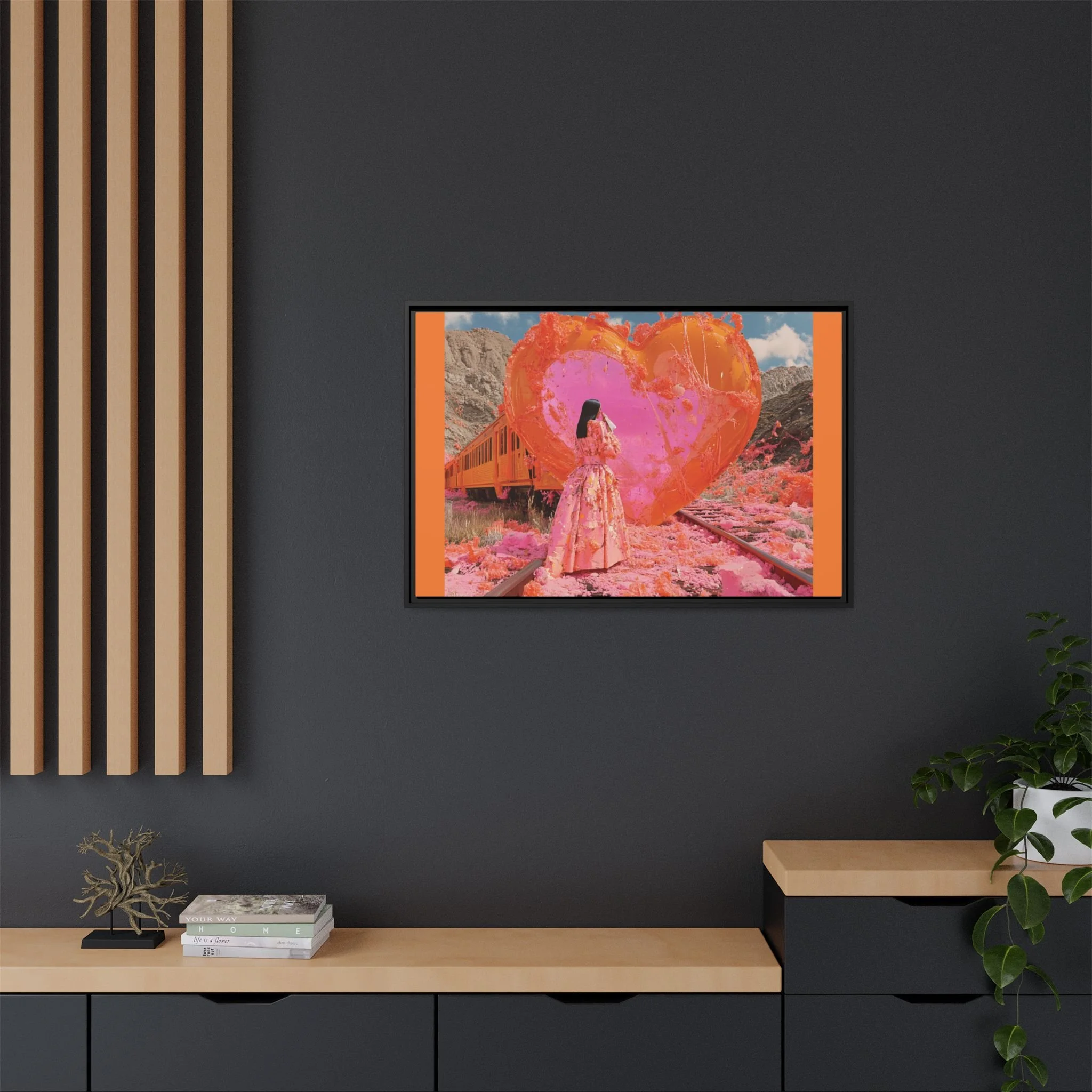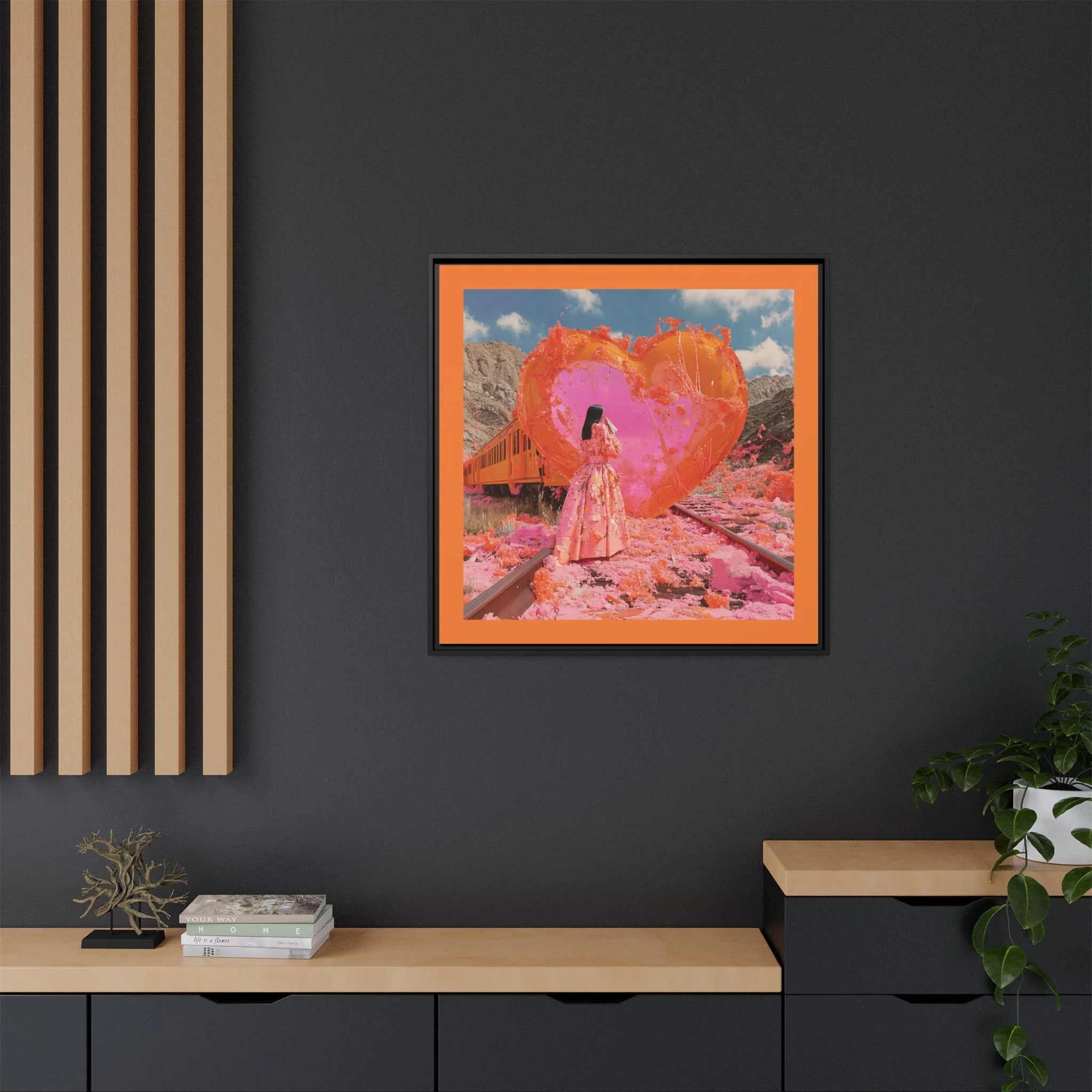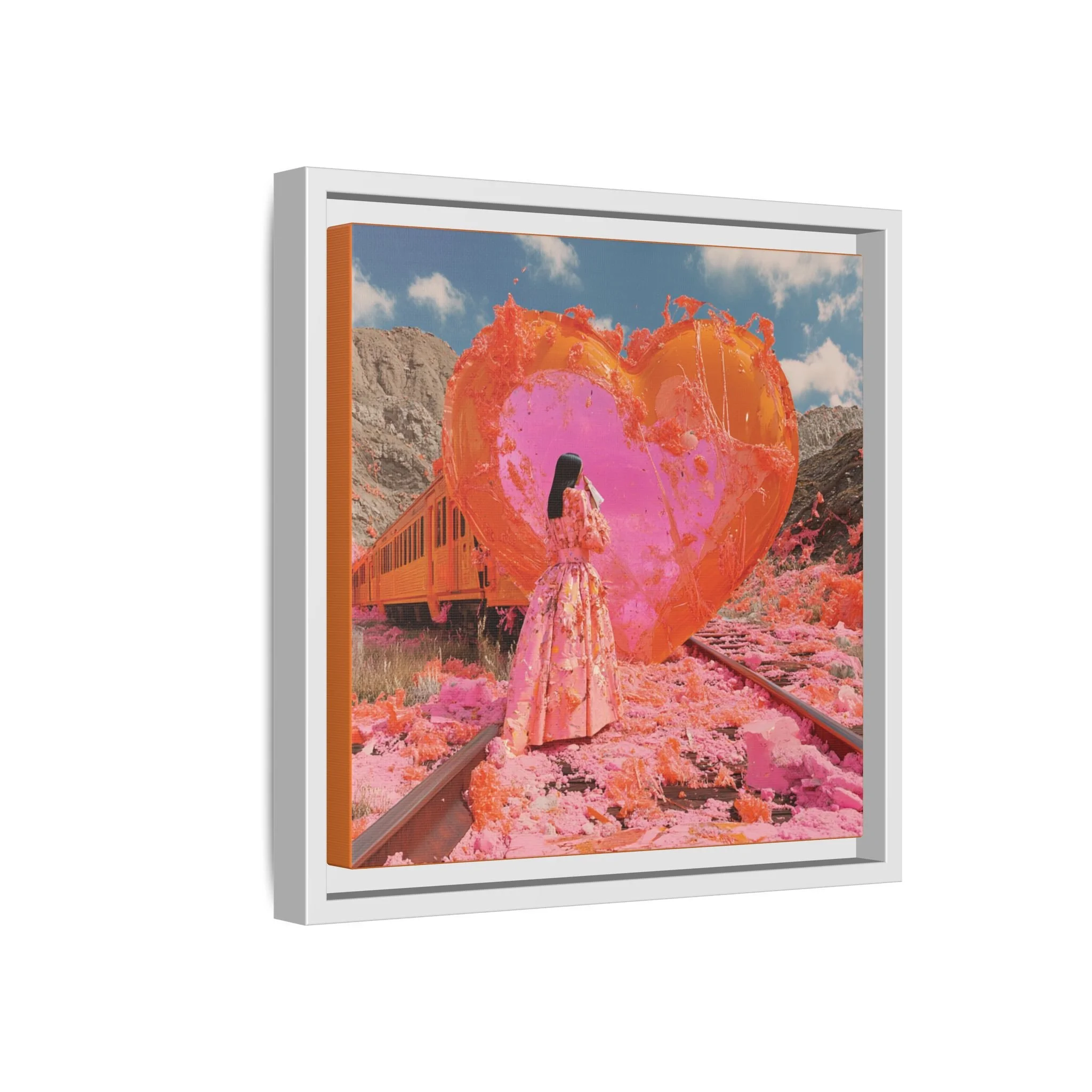 Ignite your space with the raw intensity of Train Wreck of Love, a breathtaking portrayal of love’s resilience amidst chaos. This Matte Canvas, Framed masterpiece captures the beauty of destruction and rebirth—where passion rises from the embers, and color spills from the fractures, weaving a story of transformation.